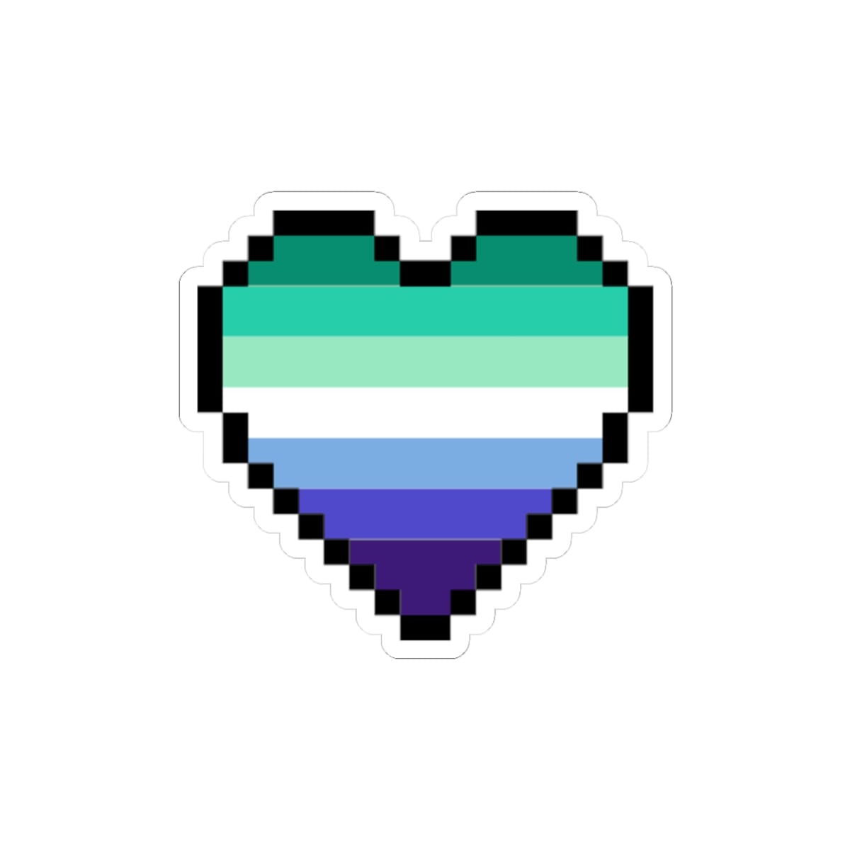 Show off your pride! This 2 inch sticker is a part of our Pixel Heart Collection. This one is our gay pride sticker. Our collection has pride designs for a variety of identities including asexual, bisexual, gay, intersex, lesbian, non-binary, pan, progress, rainbow, and transgender. Each sticker you buy supports our business’ efforts to be a safe third space for all members of the LGBTQIA+ community.